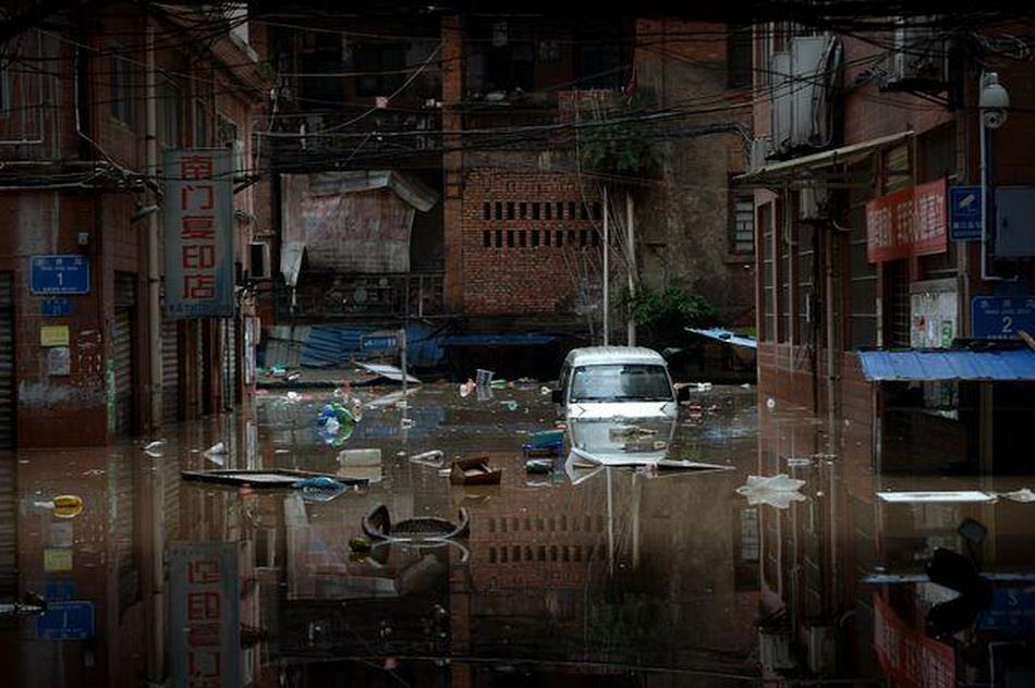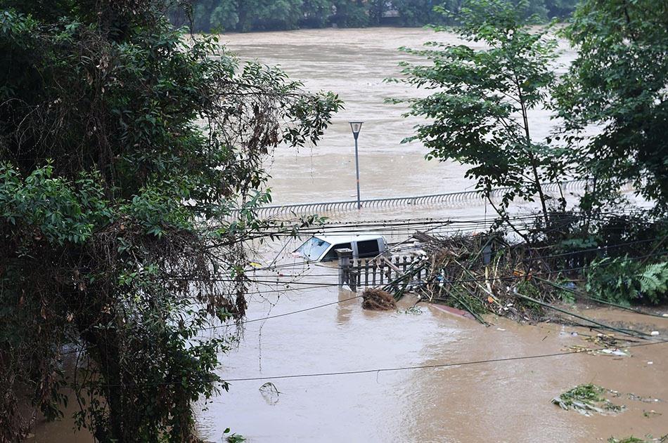 6月22日,重庆綦江洪峰过境,江边居民楼的二层被淹没。