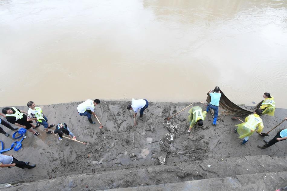 6月23日,洪峰过境后,綦江城区市民正在组织自救。
