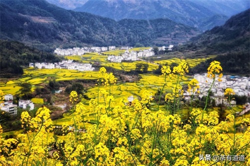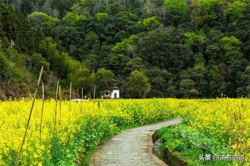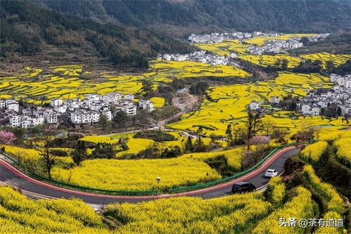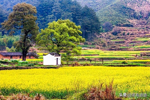 江西婺源的油菜花就是这样一种意韵,江西婺源被誉为“中国最美的乡村”,余邵诗云:“油菜花开满地黄,丛间蝶舞蜜蜂忙;清风吹拂金波涌,飘溢醉人浓郁香。”