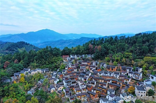 远方,起伏的青山隐隐约约,叠嶂层峦,起伏不平,山脚下,白墙、青瓦、马头檐的徽式农家建筑座落于青山绿水之中,夕阳斜照,炊烟袅袅,隐隐传来犬吠声,给静静的山村带来几分生气,好一派山村水墨画的情景映入了你的眼帘。