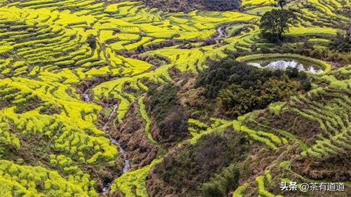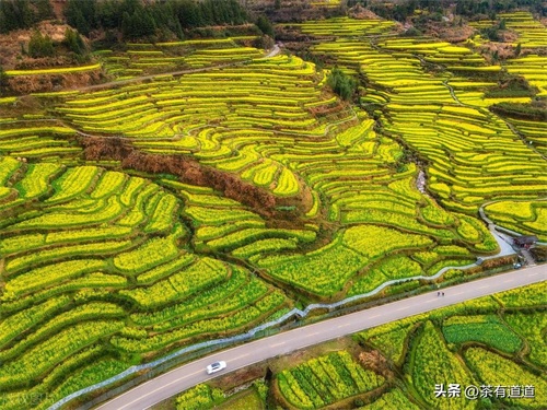 江岭梯田式的油菜花田