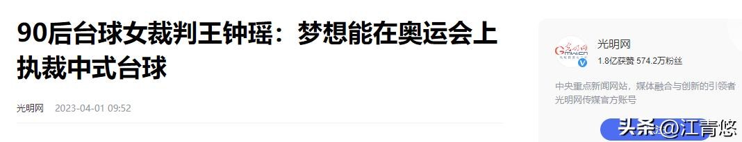 原文登载于光明网 2023年04月01日关于90后台球女裁判王钟瑶:梦想能在奥运会上执裁中式台球的报道