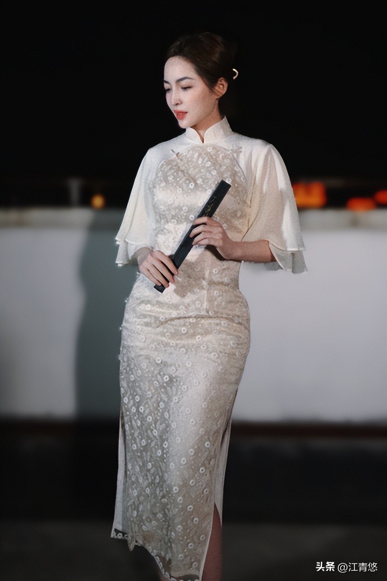 而且王钟瑶选择了一袭干净素雅的白色旗袍,这就代表着并没有多余的颜色抢占视觉焦点,如果没有一个完美的身材,恐怕是很难驾驭这款旗袍。