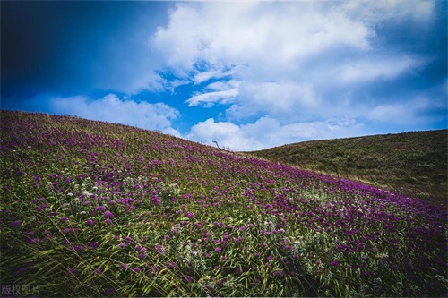贵州韭菜坪,远离喧嚣,在高山之巅,绽放的绝美花海,可持续到10月上旬,绚丽多彩的花朵把韭菜坪点缀成一片紫色的海洋,让人移不开眼。