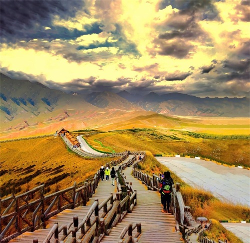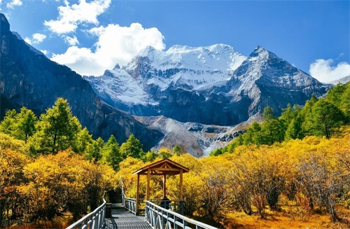 在色彩斑斓的森林中穿梭,体验极致浪漫的美景;漫步在辽阔的草甸上,依次游览雪域高原以及碧蓝的海子,波澜壮阔的秋景最为迷人。