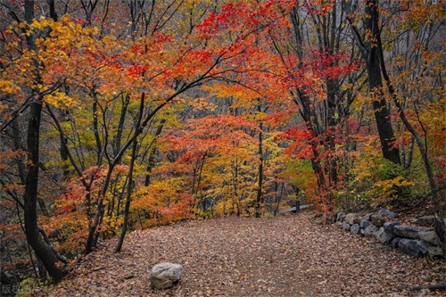 在那繁茂的山林中,满眼皆是美不胜收的枫叶秋景,关门山、老边沟、老牛背、天桥沟都是赏秋圣地。