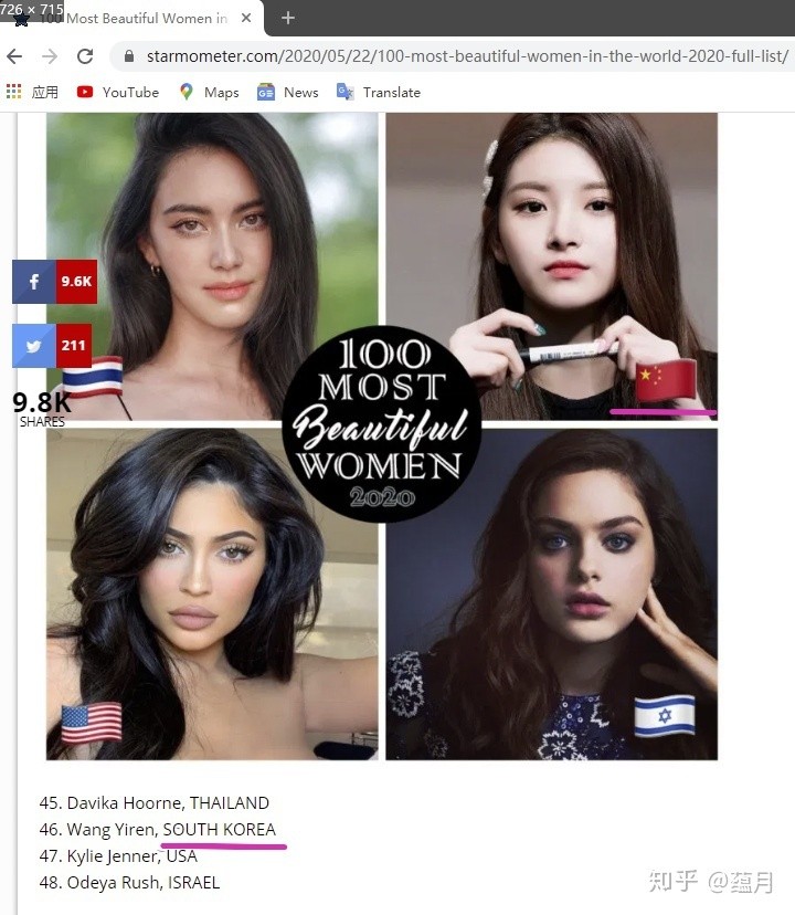 近日,海外媒体Starmometer公布了“2020年度全球百大最美女性”(100 Most Beautiful Women in the World 2020)排名[1]。 原文如下(有两处改动):