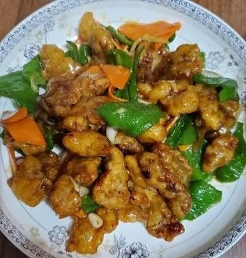 做法如下:猪肉切小块,加入少许食盐、水淀粉、油抓匀;依次下锅炸至金黄,复炸一次口感更佳;锅中留底油,将青椒块炒制断生,下入肉段,倒入用酱油、食盐、淀粉调好的碗汁,大火收汁即可。