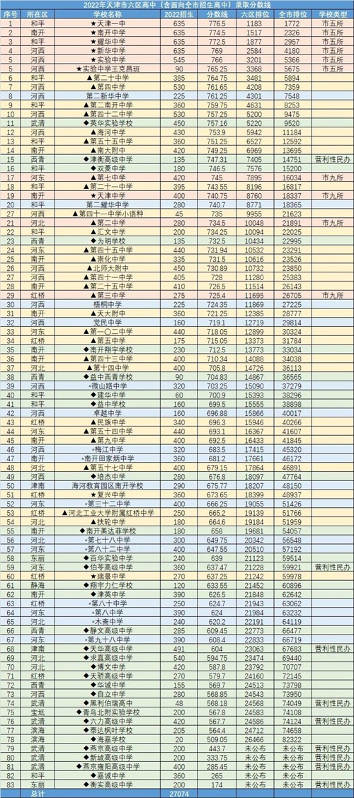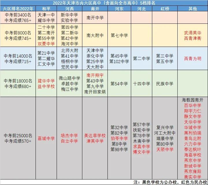 2022最新天津市内六区高中排名,共分5档!(含录取分数线)