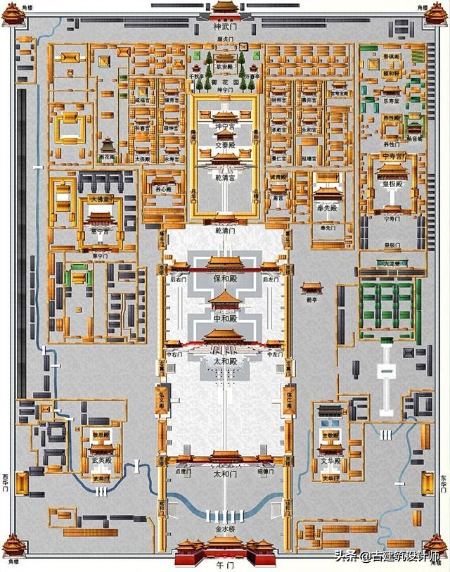 另,在影视作品中常看到皇帝传唤六部的官员,官员们会很快就来到朝堂上,这是当时的实际情形。明朝的常朝设在太和门,六部(吏户礼兵刑工)的办事机构设在端门南端御道两侧左右100间朝房内。从朝房到太和门约600米,快步走不到十分钟,快步跑四五分钟。清朝皇帝多在乾清门听政,乾清门到军机处120米,皇帝召唤军机大臣十分方便,一两分钟的步程。如果要召唤六部官员,乾清门到端门的距离稍远一些,两里多地,快步走最多一刻钟,快步跑六七分钟。