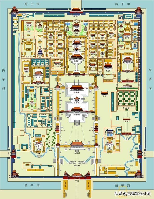 六和六安——太和门东边墙的大门叫协和门,西边的墙大门叫熙和门。太和门、协和门、熙和门再加上前朝三大殿太和殿、中和殿、保和殿正好是“六和”,而皇城上的天安门、地安门、东安门、西安门、长安左门、长安右门六座门正好是“六安”。“六和”在皇城内,“六安”正好围住皇城,内外相应就是“六和六安”。传统文化中“六”指天下,如李白的《 秦王扫六合 》之“扫六合”即是横扫天下的意思。“六和六安”的意思是天下安和。