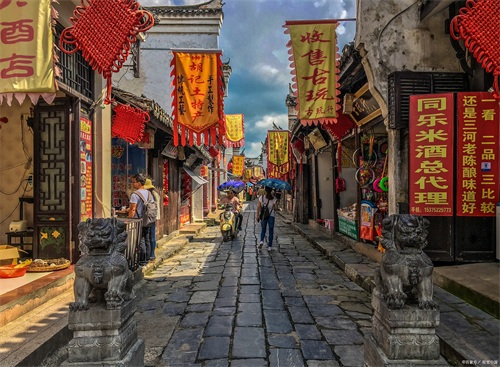 三河古镇位于安徽省合肥市肥西县,是一座典型的江南水乡小镇,门票参考价大门门票免费,游玩景点另收费。三河古镇以其古老的石板街道、古色古香的建筑和美丽的自然风光而著称。这里的秋天是最美的,金色的稻田和静谧的水道构成了一幅美丽的田园画卷。