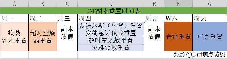 大家好,我是DNF焦点访谈,今天就来盘点一下各大团本/副本的重置时间~觉得有用的话就点个关注吧~
