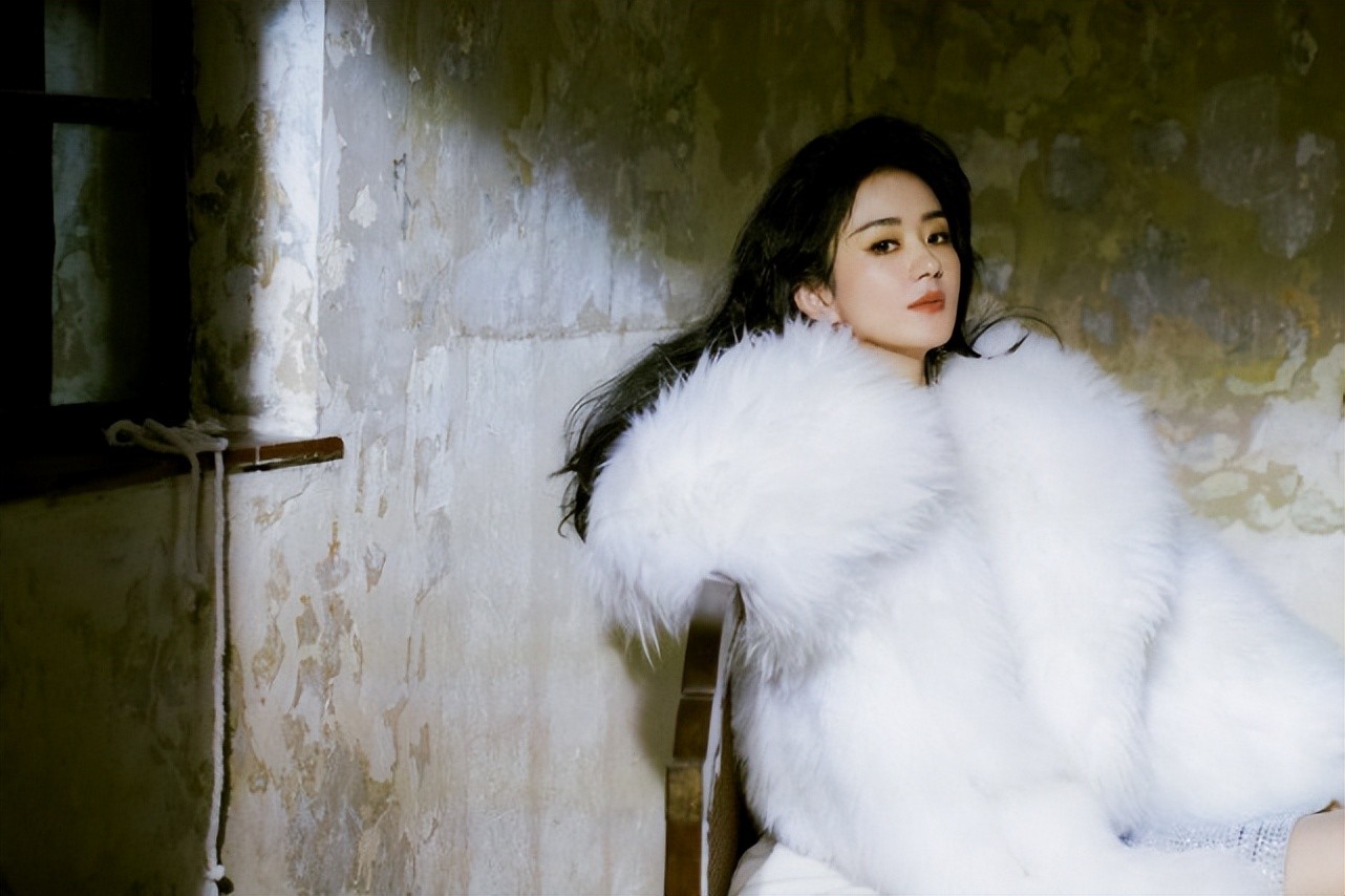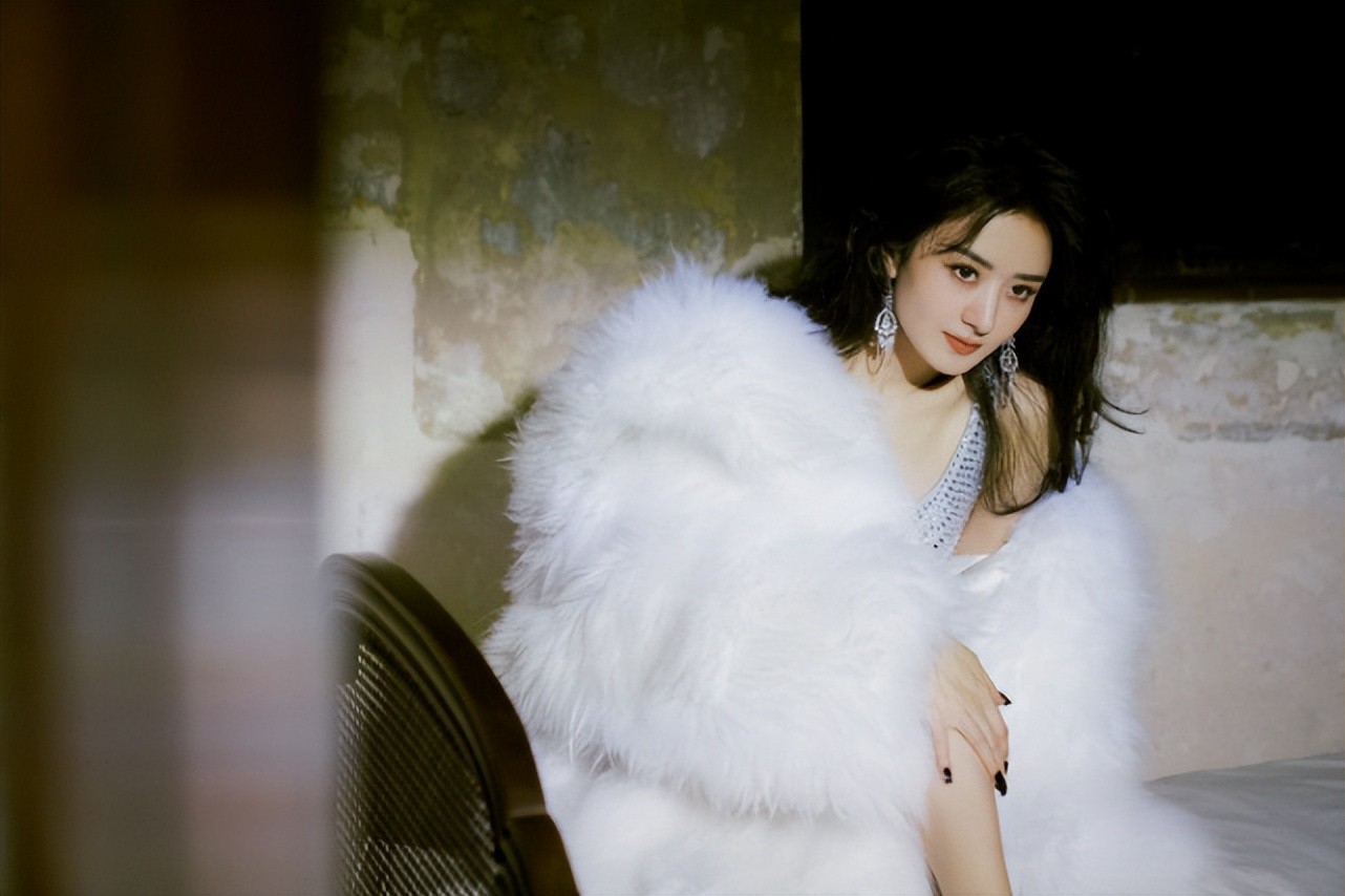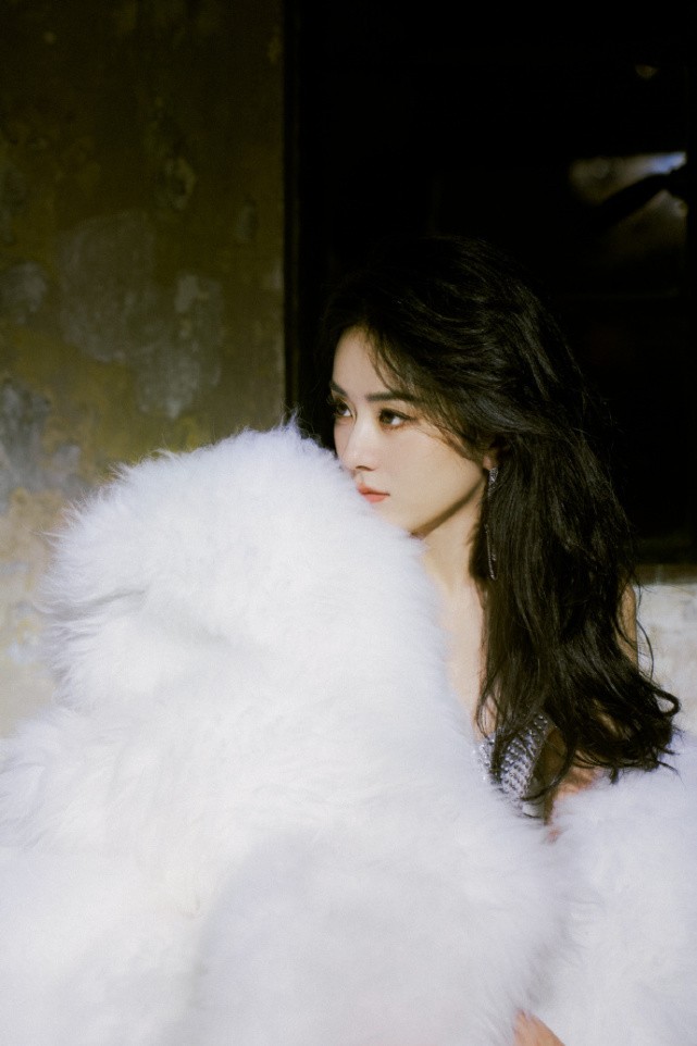 她穿着白色的皮草大衣,内搭亮片的白色背心,彰显着贵妇气息,纤纤玉手抚摸着白皙的大长腿,眼神也特别的犀利,这也难怪多年来会被不少网友视为心目中的女神了。
