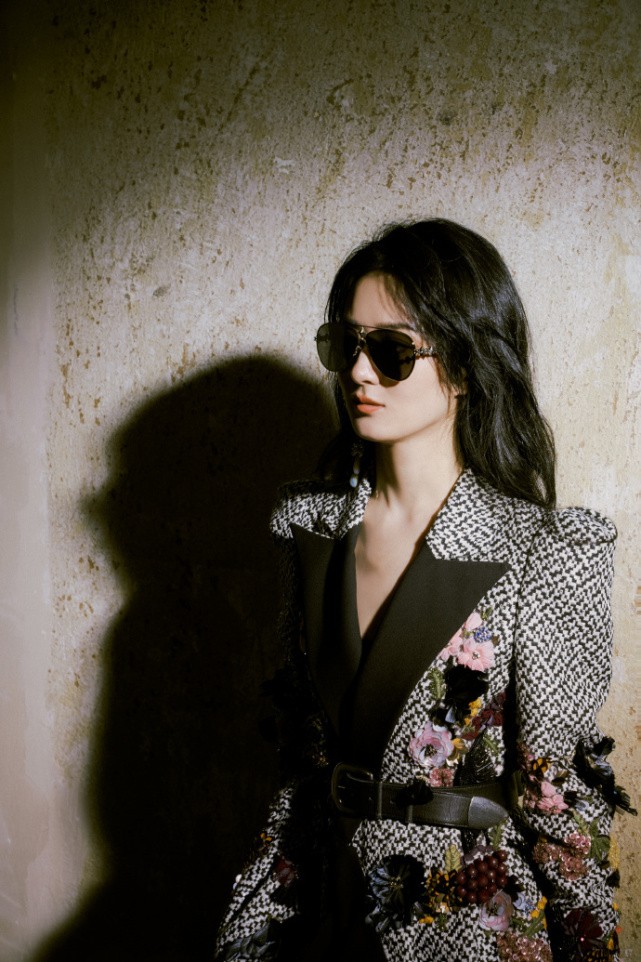 赵丽颖穿上西装款的外套,戴上墨镜,这造型也特别的酷飒,有着霸道女总裁的模样,简直美得让人舍不得移开眼了。