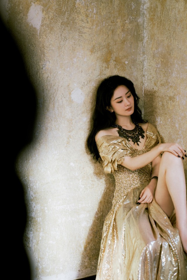 赵丽颖换上深V高叉长裙,若隐若现的事业线也特别的撩人,坐在墙角里秀出了一双白皙纤细的大长腿,性感的模样也丝毫不输杨幂了。她的脖子上还戴着一大片深色的项链,透露着丝丝的复古气息。