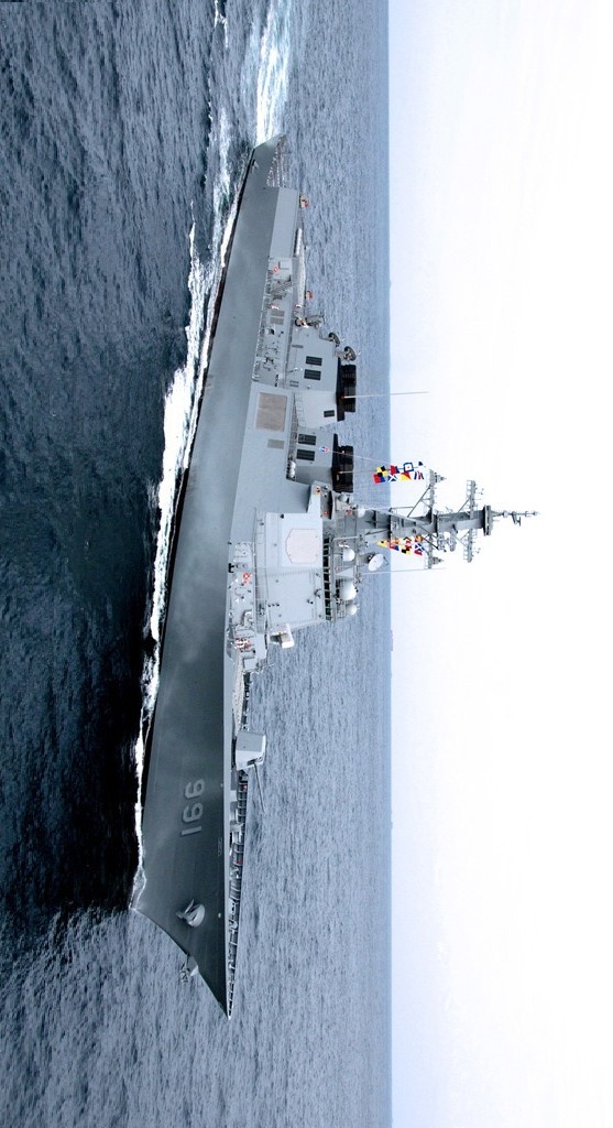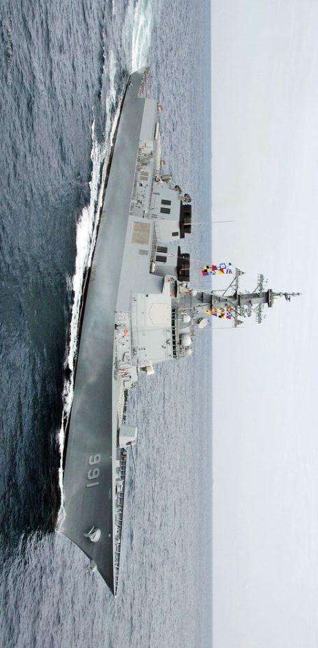 源自美国伯克级,这点应该没有争议,美国的盾,不仅仅是日韩,欧洲各国都是美国盾,韩国造船业本来就很发达,所以当年它的出世还是蛮吓人的,万吨多的排水量,128垂发比提康德罗加122垂发还要猛,高出一小头,数据骄人啊. 也是宙斯盾舰中载弹量之最啊,当时在亚洲可以称霸,可以说是一舰之下万舰之上啊。