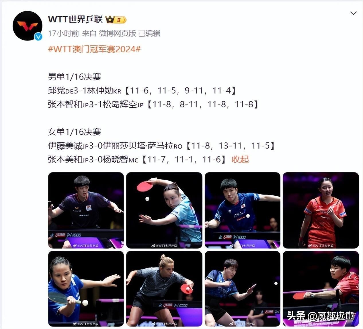 关键时刻,张本智和顶住压力,凭借更加稳定的发挥,最终以3比1的比分战胜了松岛辉空,成功晋级下一轮