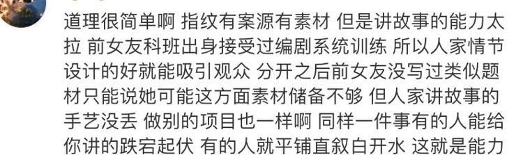 还有不少观众开始质疑编辑指纹(原名韩冰)的水平,并想起了此前闹上微博的“指纹和前女友陈琼琼的版权纠纷”。