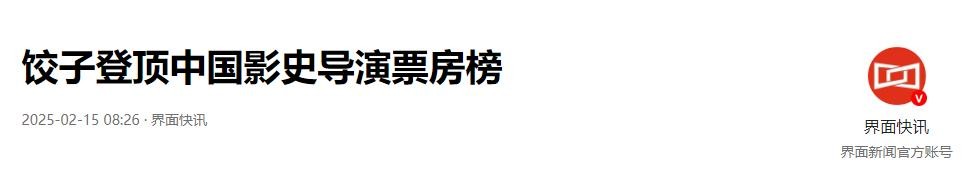 界面快讯 2025-02-15——《饺子登顶中国影史导演票房榜》