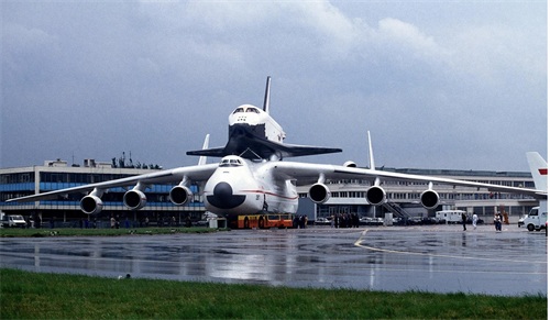 安-225的一号原型机是在1988年11月30日完工出厂,1989年5月12日时它首次完成暴风雪号的背负飞行。