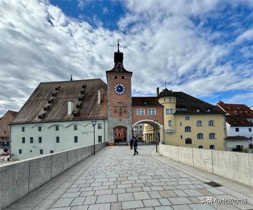 雷根斯堡值得大书特书的就是它的石桥。石桥和桥门建筑于1135年至1146年间,是中世纪最重要的桥梁建筑之一,也成为12世纪到13世纪许多大型石头桥梁的范例。石桥长336米,宽8米,平均高度15米,共有16个桥洞,桥洞宽度10.15米至16.60米不等,桥墩宽度5.85公尺至7.40公尺不等,石桥总重约10万吨。石桥曾经是雷根斯堡唯一一座跨越多瑙河的桥梁,持续了800多年。我们是把它走完了的,因为从桥的另一端观看雷根斯堡才是最美的角度。可以看到老石桥的拱形门,雷根斯堡的钟楼和圣彼德大教堂。