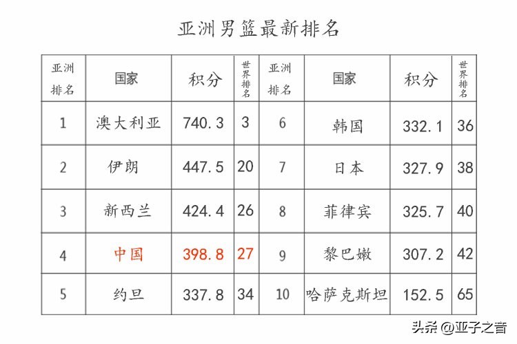 亚洲男篮排名(如下图)