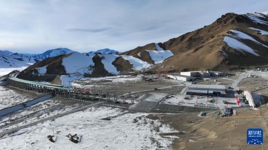 这是12月30日在新疆和静县拍摄的天山胜利隧道出口(无人机照片)。新华社记者 胡虎虎 摄