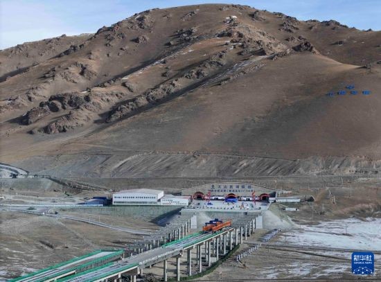 这是12月30日在新疆和静县拍摄的天山胜利隧道出口及附近在建公路(无人机照片)。新华社记者 王菲 摄