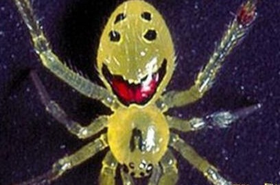 这种长着笑脸的蜘蛛的照片中可以看到它的腹部彩色的斑点十分醒目,就像一张人脸在灿烂的大笑,连眉毛眼睛都可以清晰可见,大大的红色嘴巴好似要啃什么东西一样。这样的生物就彷佛是造物者开的一个玩笑,想逗乐大家一样!