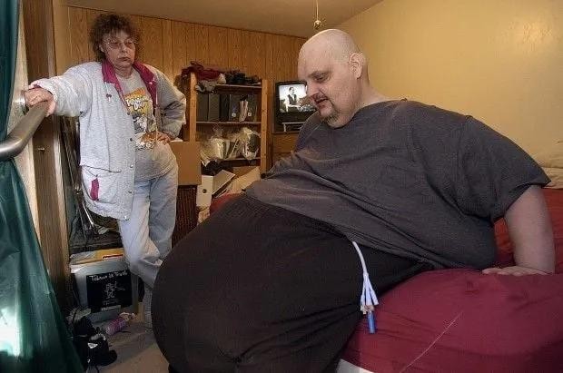 乔恩·布劳尔·明诺奇是一名美国男子,他的峰值体重为 635 公斤,是有史以来最重的人。明诺奇 12 岁时体重 133 公斤,身高 170 厘米。到 22 岁时,他身高 185 厘米,体重 226 公斤。明诺奇的体重不断增加,直到因心脏和呼吸衰竭住院,当时他 36 岁。