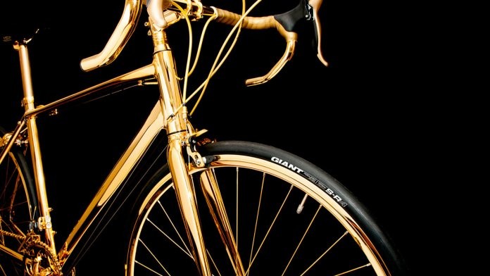劳斯莱斯(Rolls Royce)的24K金赛车自行车。这款手工制作的镀金赛车自行车堪称运动精致的缩影。