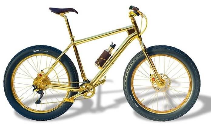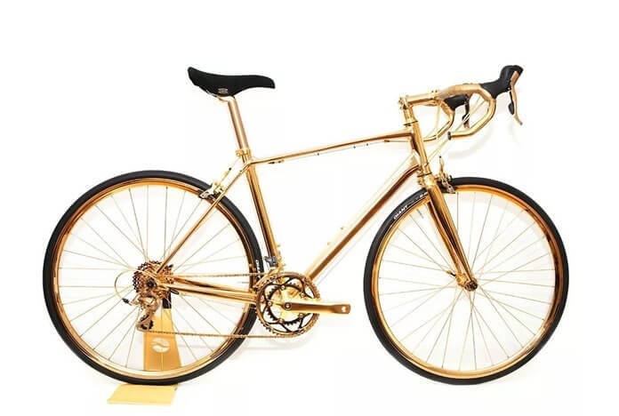 世界上最昂贵的自行车是休·鲍尔(Hugh Power)开发和生产的。它的车架由24克拉纯金制成,将自行车变成了真正的艺术品。而且,这款超贵玩具的每个零件都经过镀锌和认证。个性化的钻石装饰徽标和巧克力棕色鳄鱼皮座椅是一些艺术特色,补充了此两轮金色奇迹的设计的奢华。