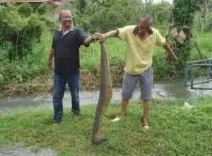 传说最大的食人巨型水蛭可长到约2米长,面对这个大家伙吓都是死了。