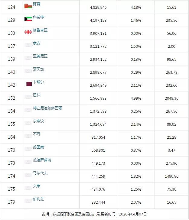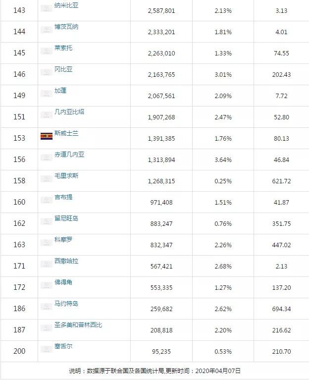 截止2020年04月07日,全球230个国家人口总数为7585204179人,其中中国以1400050000人位居第一,成为世界上人口最多的国家,印度以1354051854人位居地球第二,第三至第十名分别是:美国、印度尼西亚、巴西、巴基斯坦、尼日利亚、孟加拉国、俄罗斯、墨西哥。