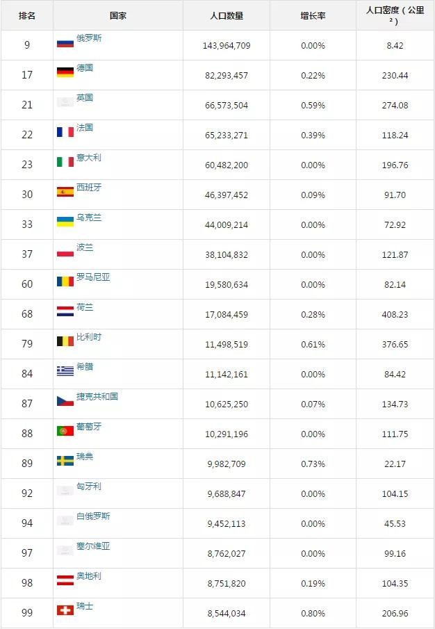 欧洲人口最多的国家是俄罗斯,人口总数为143964709人,排名世界第9