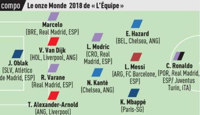 2018年世界足坛最佳阵容名单《队报》年度最佳11人