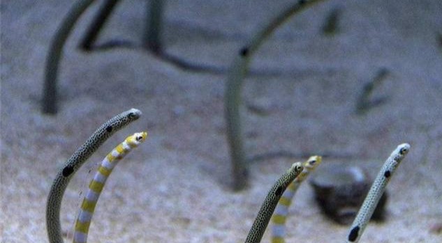 花园鳗的体型细长,通常白天会将下半身埋在砂地里,只露出上半身捕食飘过的浮游动物。花园鳗的警惕性超级强,只要方圆两公尺内稍有风吹草动,就会立马将身体缩回洞中,直到几分钟后才会重新探出头来。它们胆小又怕生,如果收到惊吓或者强光,就会因极度的紧张而死去。