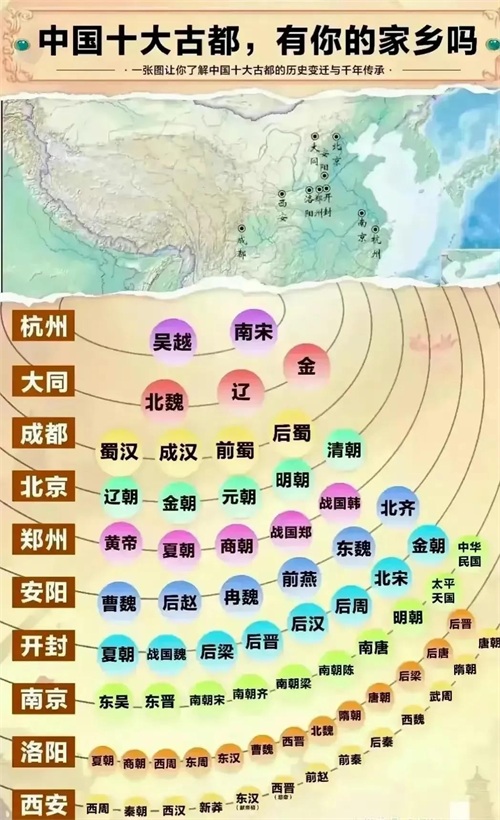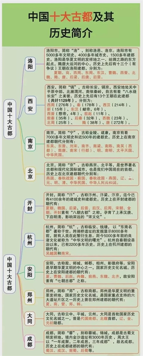 其实中国几大古都的说法也一直在变化和更新。从最早的“四大古都”“六大古都”,发展到后来的“七大古都”八大古都”“九大古都”,再到现在的“十大古都”。