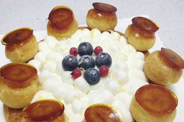圣多诺黑香醍泡芙诞生于巴黎,它有着王冠一样的外形,显得十分的华丽巨大,制作工艺十分繁琐困难,有着许多奶油,富有嚼劲,热量较高不适合减肥的人们食用。