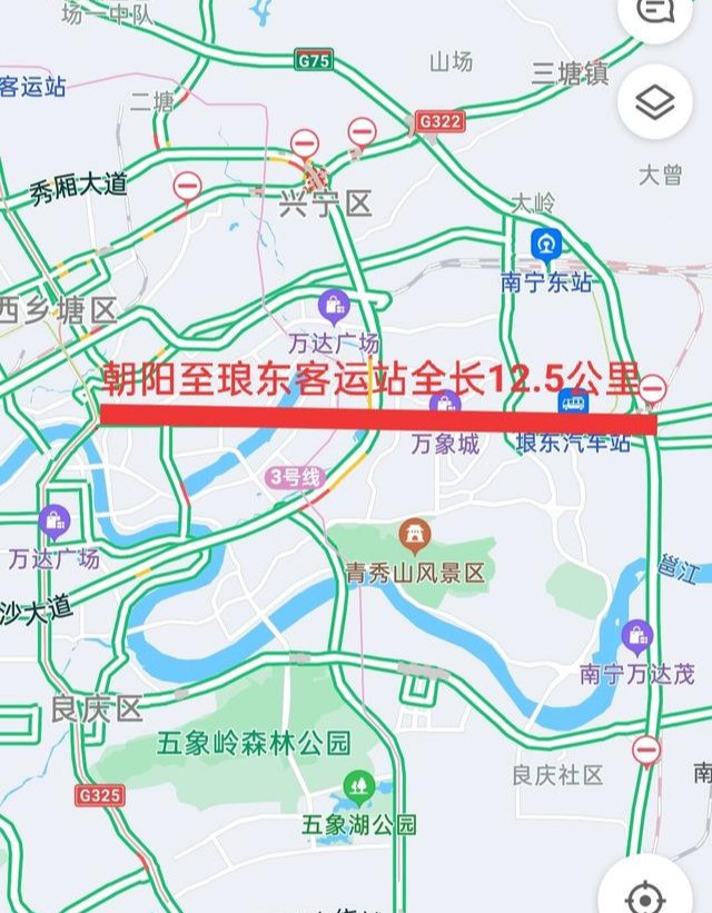 没错,就是位于南宁市的民族大道了。民族大道始建于上世纪70年代,1978年从邕江大桥北开始,1987年建设到现在的民族大道园湖路口,1991年它延伸至南湖桥头,随后就一直不停地向东,向东,2002年终止于琅东收费站,全线长12.5公里。被誉为南宁“第一城市大道”。它自西向东的延展建设是南宁市发展的缩影,承载了城市的历史记忆。