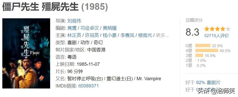 陈友、午马和钟发三大抓鬼大师齐聚一堂,僵尸先生系列唯一一部没有林正英参演,却也是香港僵尸题材的巅峰作品之一。