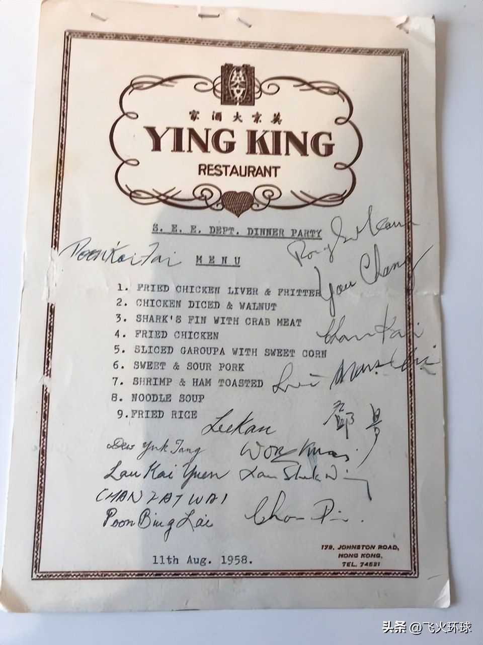 英京大酒家当年的餐单