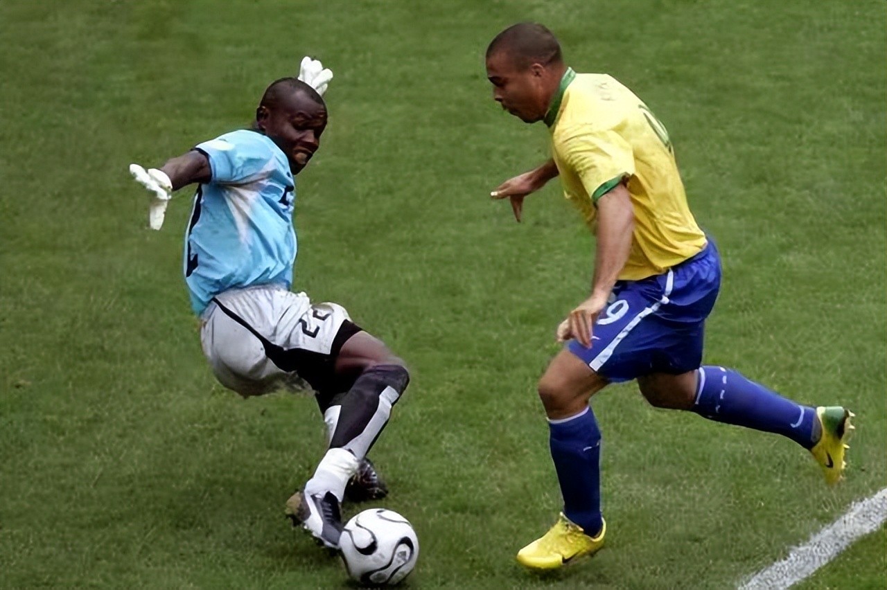 2006年德国世界杯八分之一决赛,巴西对阵加纳,比赛开场仅5分钟,罗纳尔多接到卡卡的长传球,一路狂奔形成单刀,钟摆过人假动作晃过门将,推射空门得手,这是他个人世界杯上的第15粒进球,也是最后一粒进球,进球后做出了他常用的摇手指庆祝。即便年近而立,即便难复当年,他依然拥有外星人的魔法。当钟摆过人再现,那是在告诉人们,属于外星人的时刻要来了,他用自己的标志性动作告别世界杯,也算是一种完美谢幕。