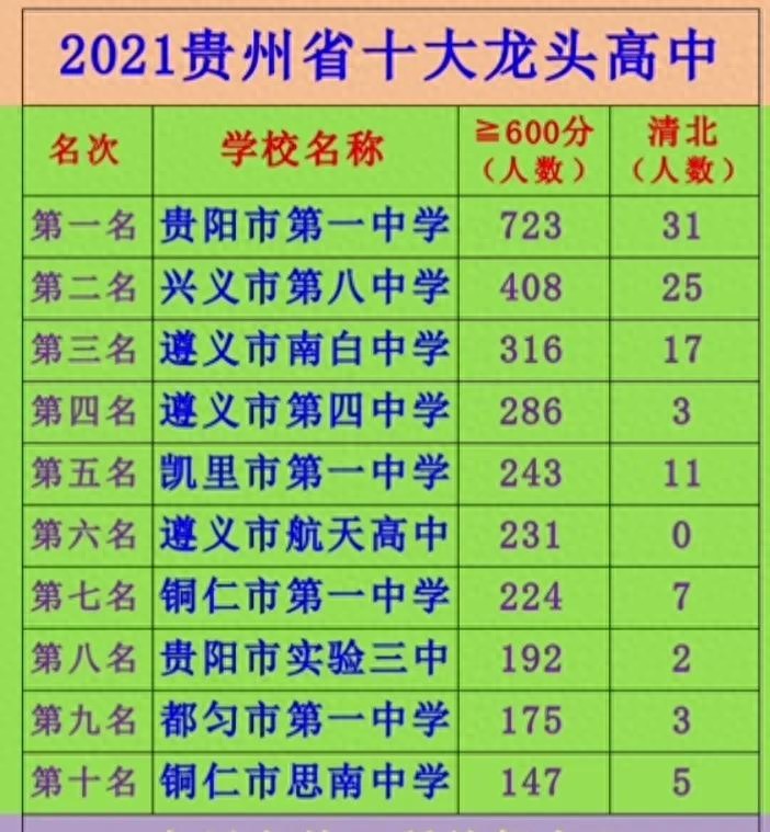 贵州省十大高中排名,除贵阳一中外,你还知道哪些?