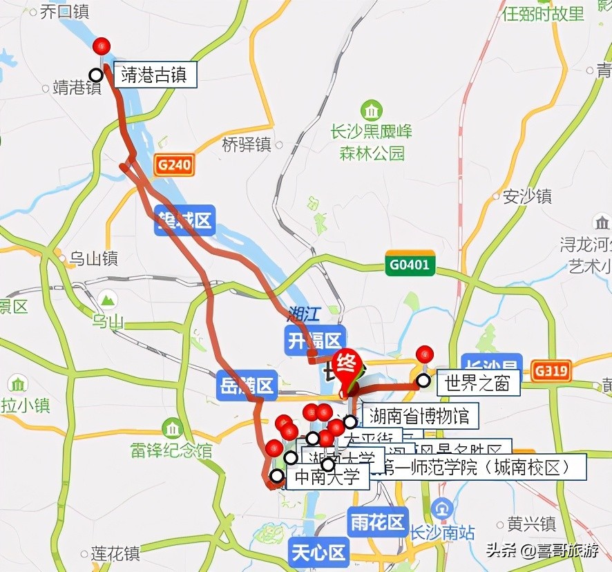 靖港古镇自驾至长沙交通路线:靖港古镇-少先路-069县道-潇湘北路-长沙。全长39公里,车程1小时9分钟。