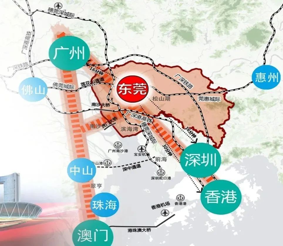 松山湖布局了4轨道4高速1莞深通道,与深圳形成一个“一小时交通圈”,同时也是一个“一小时产业圈”。
