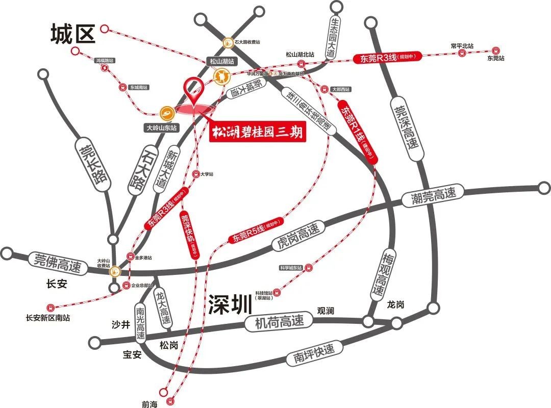 5、松山湖站、大岭山东站均为东莞1号线在建中站点,具体通车时间以政府发布信息为准,不做开发商承诺;数据来源于东莞市综合交通运输体系发展“十三五”规划三五”规划