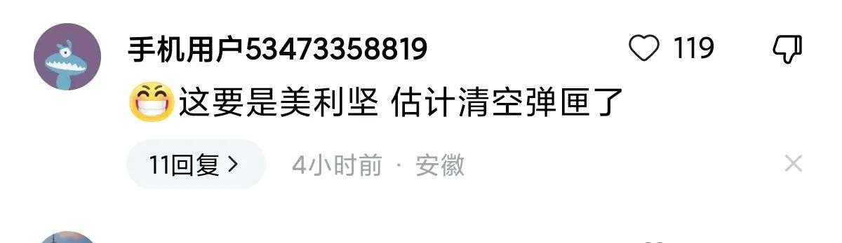一位安徽的网友笑道,这要是美利坚,估计清空弹匣了。