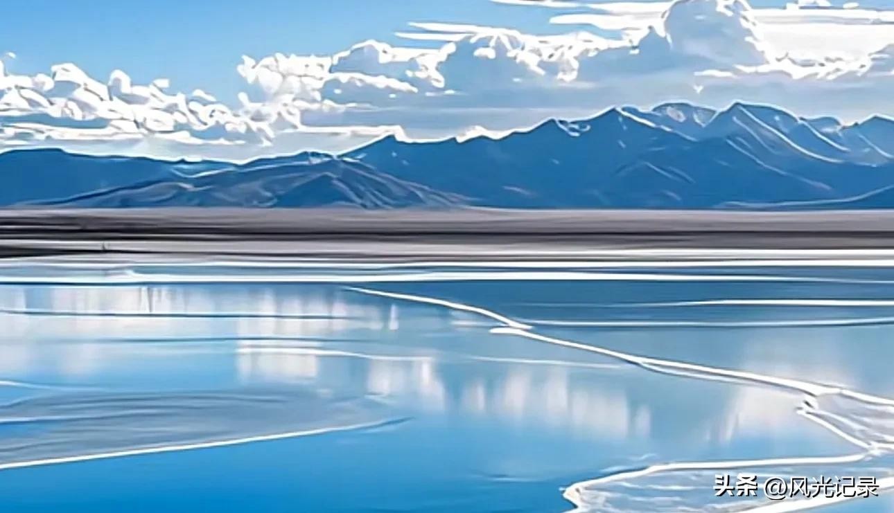 茶卡盐湖,位于柴达木盆地中,被誉为“中国最美盐湖之一”。盐湖四周被雪山环抱,湖水清澈见底,天空倒映在平静的湖面之中,形成一幅如诗如画的景象。